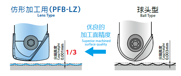 高效精加工(切削路径高度相同时,例 0.003mm)